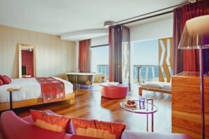 Hotel Bohemia Suites & Spa nabízí komfortní ubytování ve více než 60 pokojích. Každý pokoj je klimatizovaný a vybavený vlastním sociálním zařízením, televizí se satelitními programy, minibarem a trezorem. Pokoje mají také balkon s výhledem do zahrady nebo na moře, což poskytuje příjemné prostředí pro odpočinek. V hotelu se nachází dvě restaurace, bar a jacuzzi, což přispívá k pohodlí a relaxaci hostů.